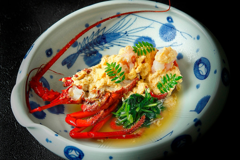 愛知県で有名な三河一色産の鰻を白焼きにして、丹精込めてじっくりと煎り込んだ大豆スープで骨まで柔らかく蒸し上げます。その大豆ペーストと生クリームで味を整えたスープ蒸しと鰻、そして鰻と大豆の餡を張った逸品は濃厚、まろやかで味わい深くなっております。