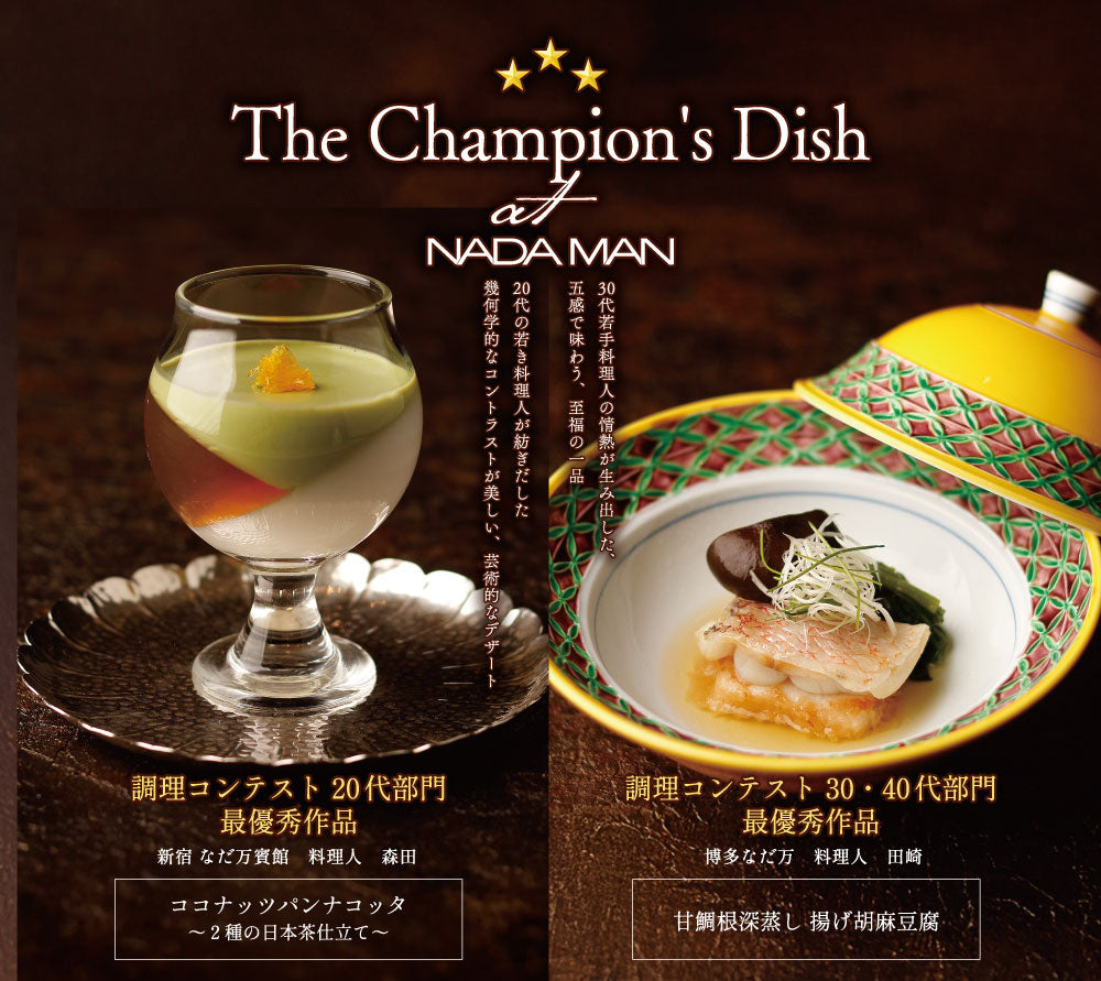 なだ万社内コンテストの調理部門にて最優秀賞を獲得した料理を、各店の懐石料理またはコース料理にて提供します。