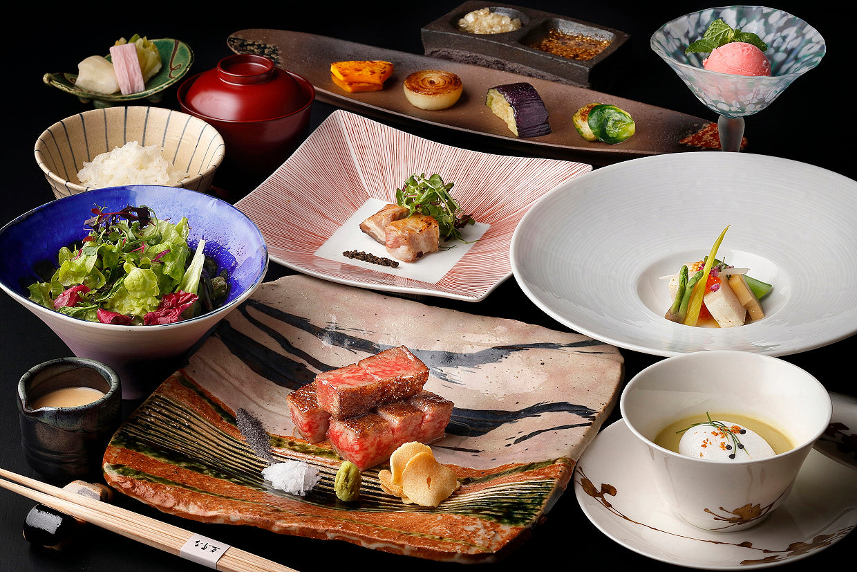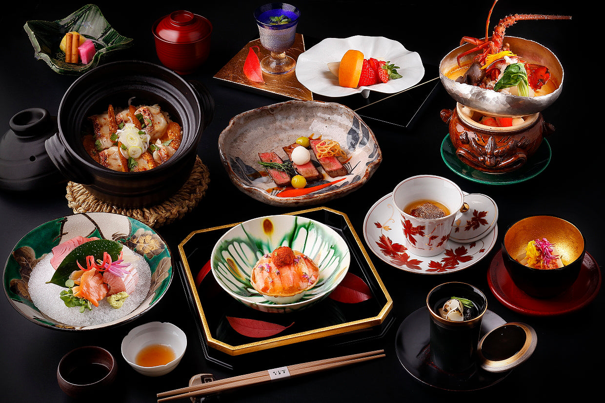 Steamed egg custard, simmered assorted vegetables, grilled sliced wagyu beef, Deep-fried seafood, sushi, udon noodle, Ice cream