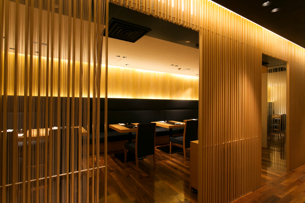 The taste of the tree"" of a tree lattice used abundantly and the soft illumination from a ceiling direct a calm atmosphere.