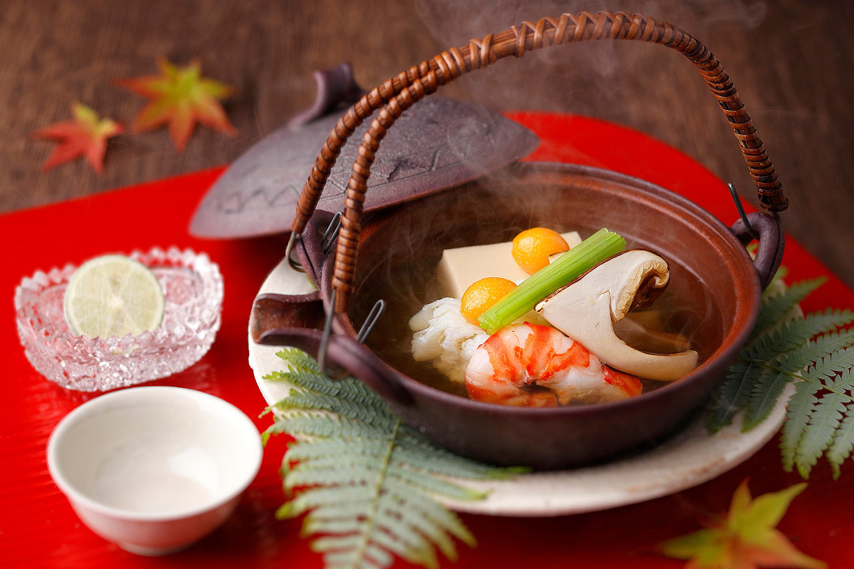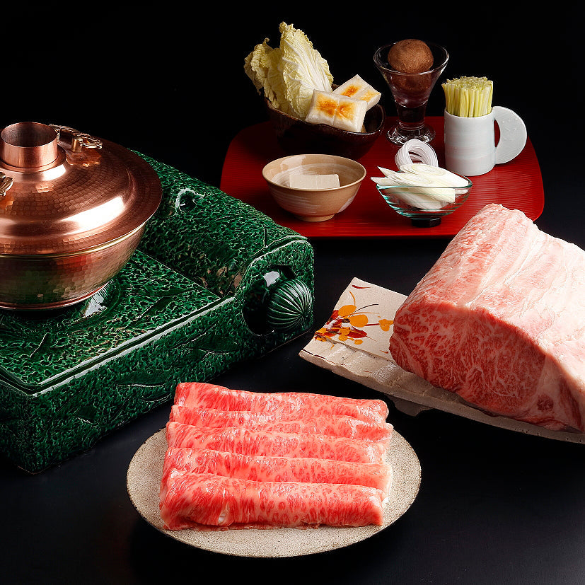 先付、しゃぶしゃぶ(黒毛和牛、野菜盛り合わせ)きしめん、デザート