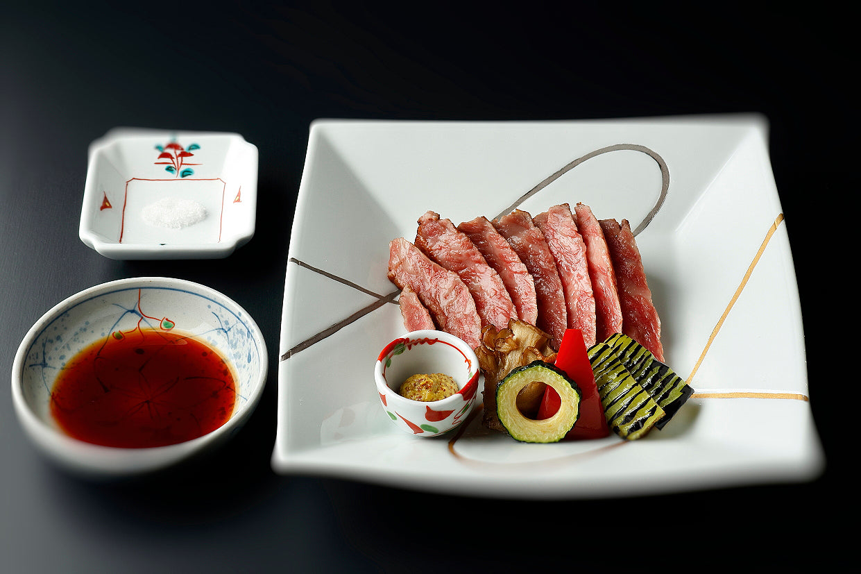 先付、造り、サラダ、黒毛和牛ステーキ(フィレ100g)御飯、香の物、お椀、デザート