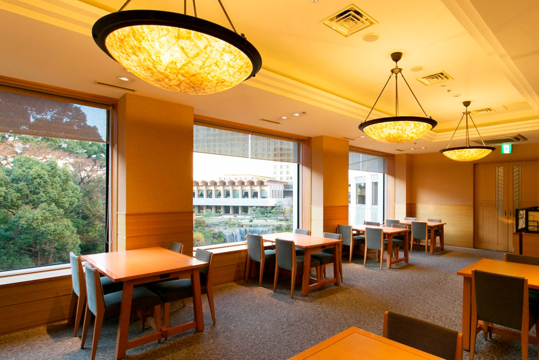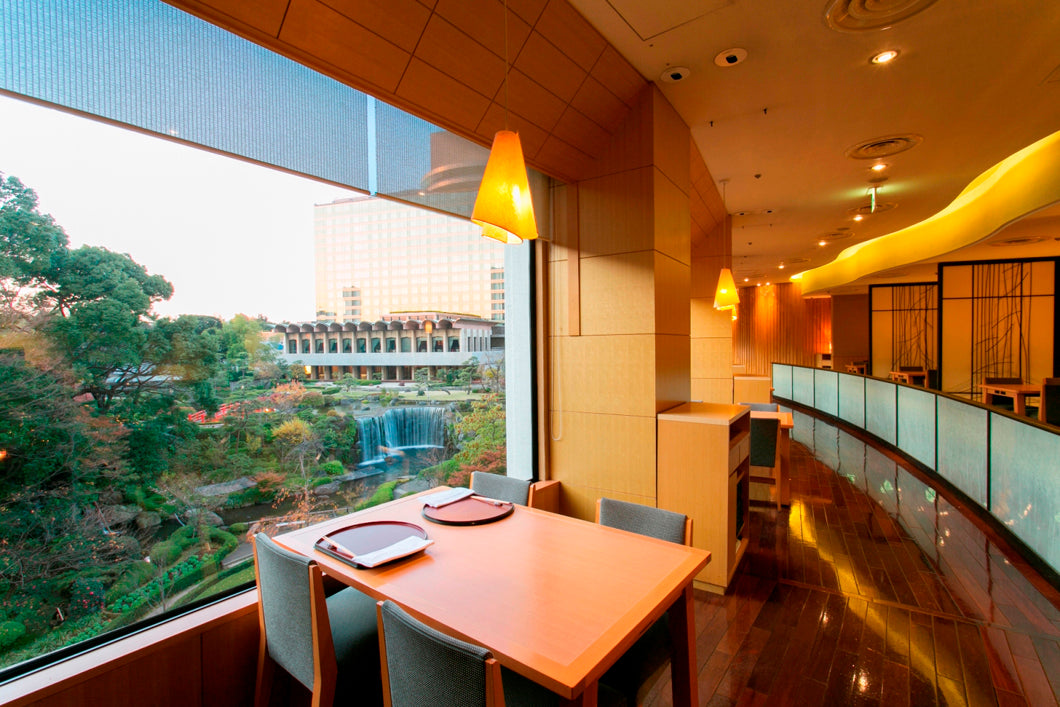 解放感あるダイニング席からは、四季の移ろいが楽しめる、ホテルニューオータニの1万坪に及ぶ日本庭園を望みながら、四季折々のお料理をお楽しみいただけます。
