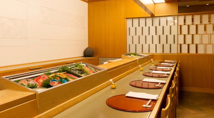 先付、造り、焼物、寿司盛り合せ、止椀、デザート