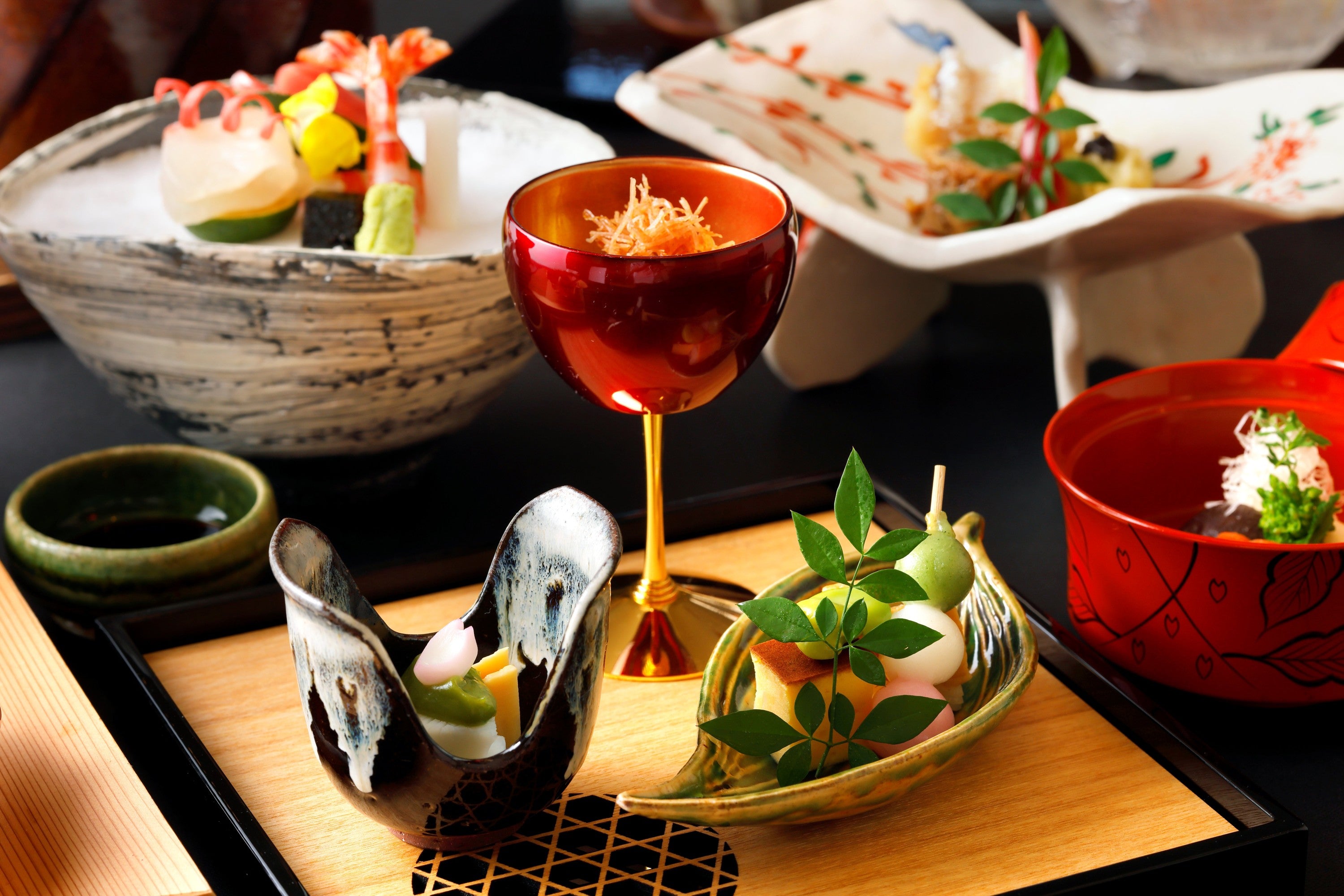 旬菜、松花堂弁当、吸物、デザート