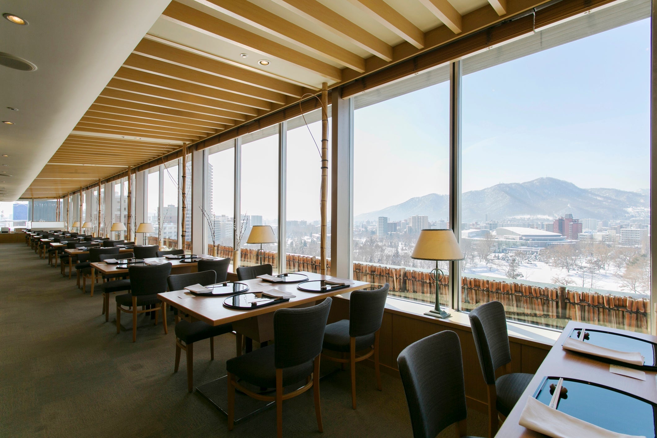 窓外に広がる豊かな自然の中島公園を眺めながら