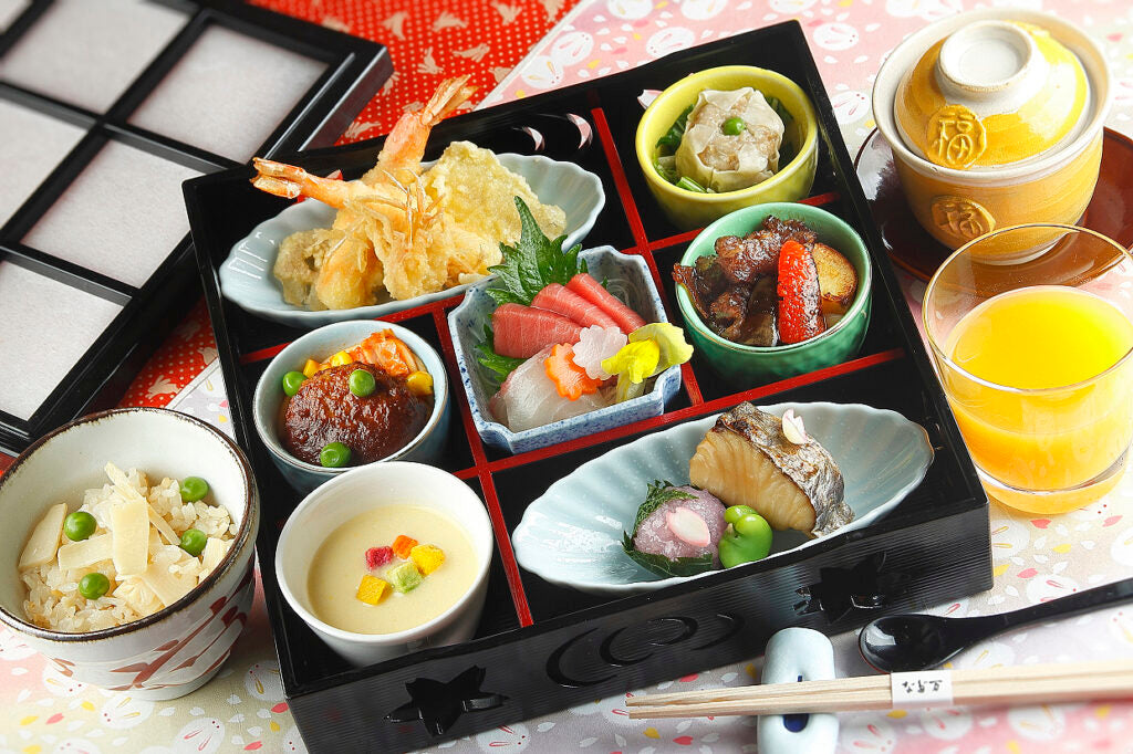 すり流し、弁当(造り、黒毛和牛すき焼き風、焼魚、茶碗蒸し、ハンバーグ、しゅうまい、揚げ物(チョイス))、食事(チョイス)、デザート(チョイス)