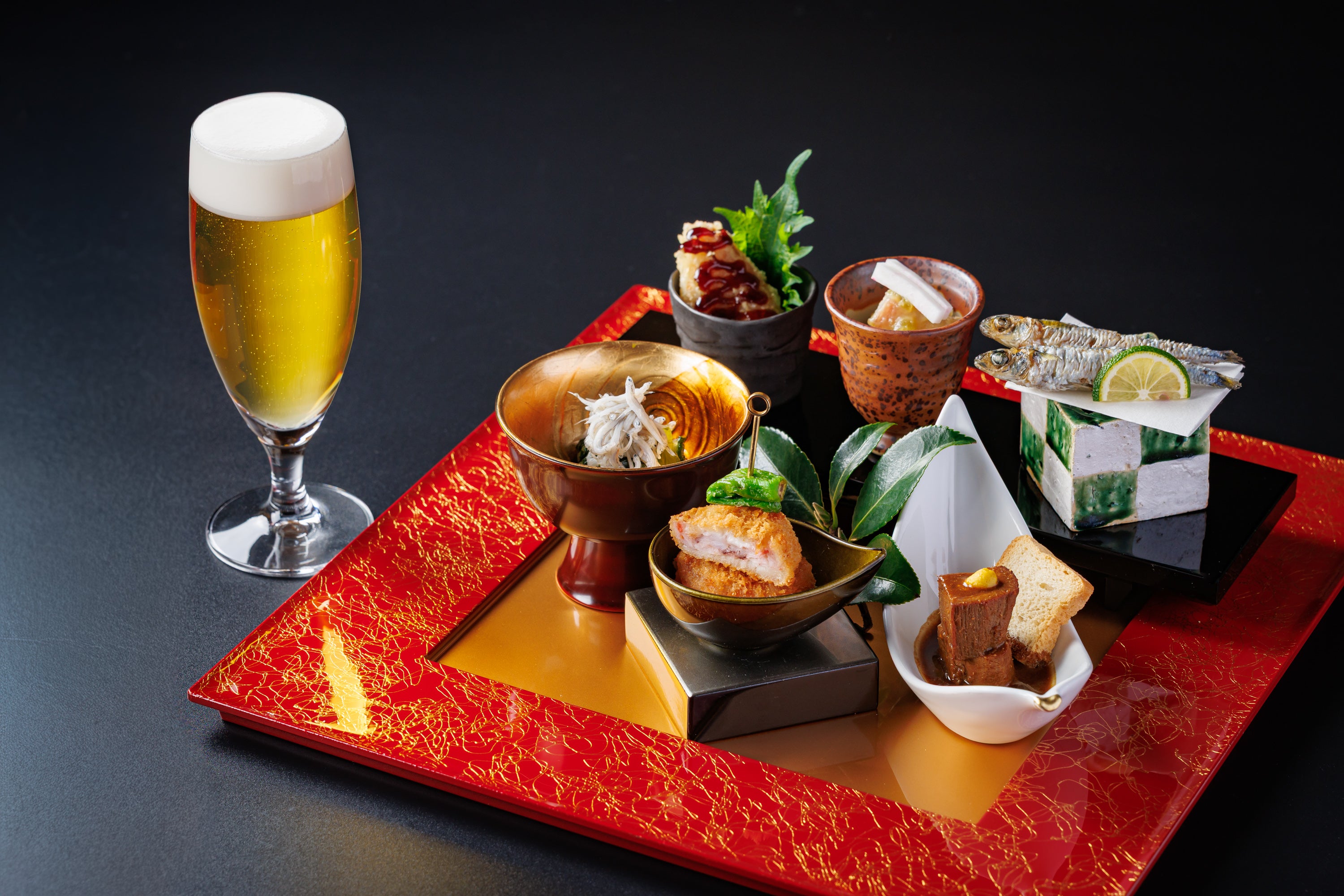 当店調理長のシグネチャー料理「鮑柔らか煮」や「仙台牛」、冬の味覚の河豚や桜海老の御飯まで楽しめる、贅を尽くした懐石でございます。