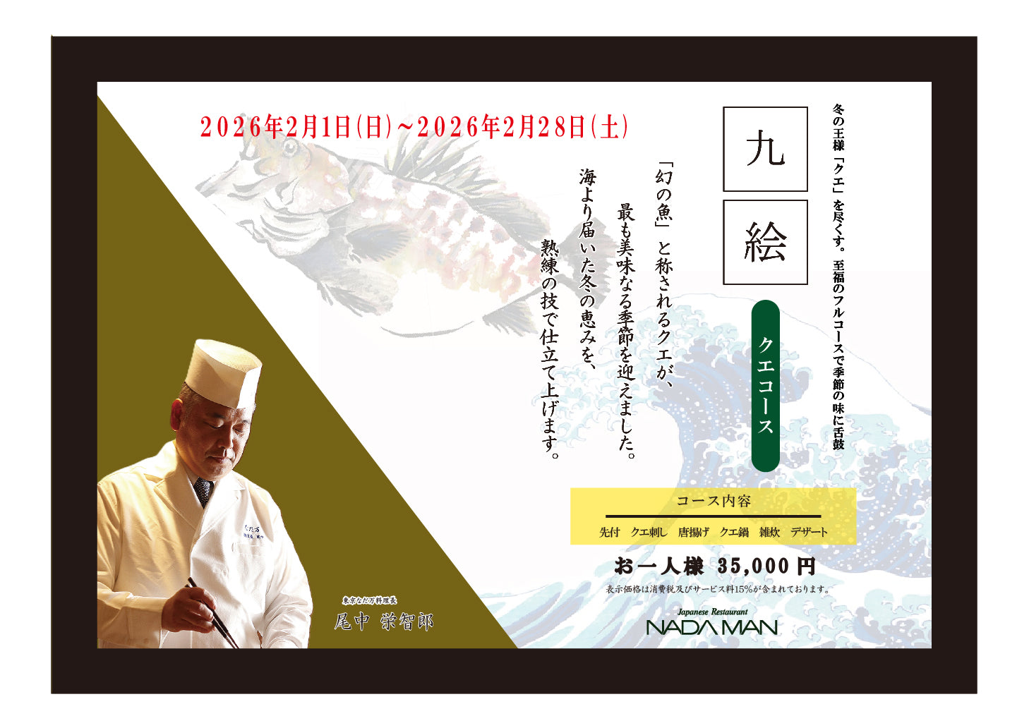 第2弾 冬の味覚「 九絵(クエ)コース 」のご案内